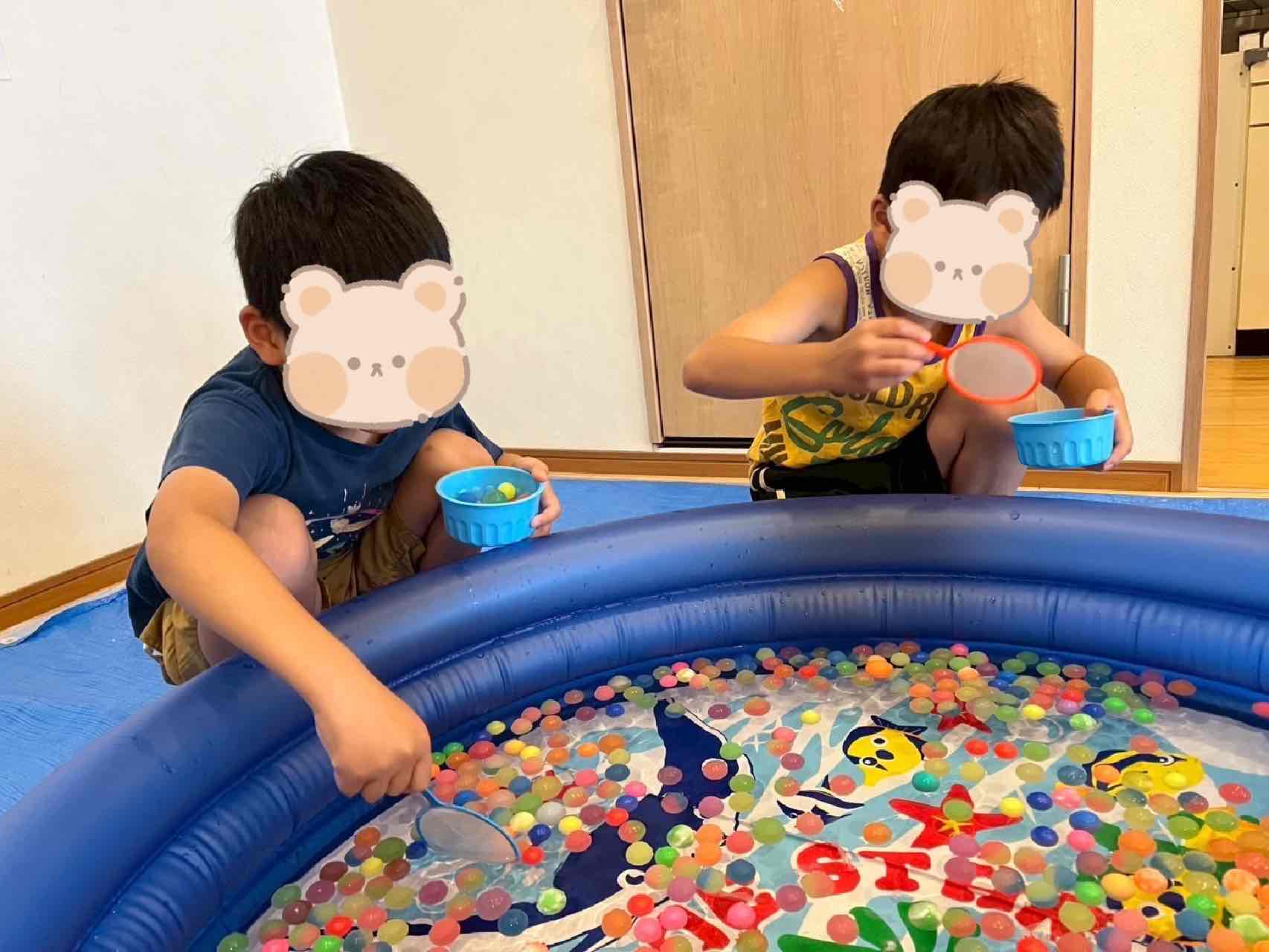 1年生たちも初めての水遊びで、最初は恐る恐るだった子も夏休み終盤では慣れた感じで遊んでくれていました(*^▽^*)