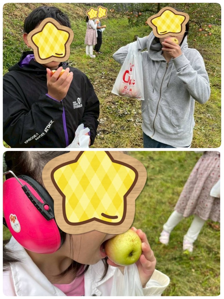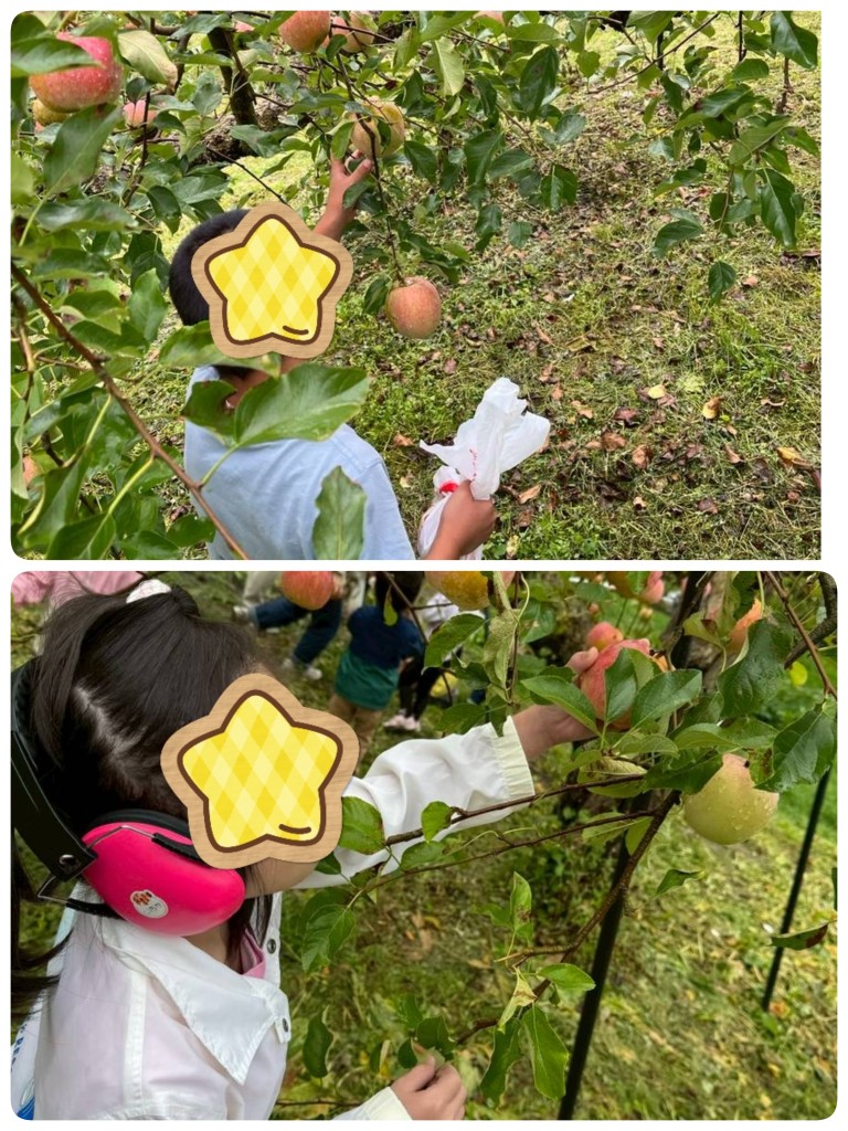 自分で取ったリンゴを手にした瞬間、とてもうれしそうでした😊