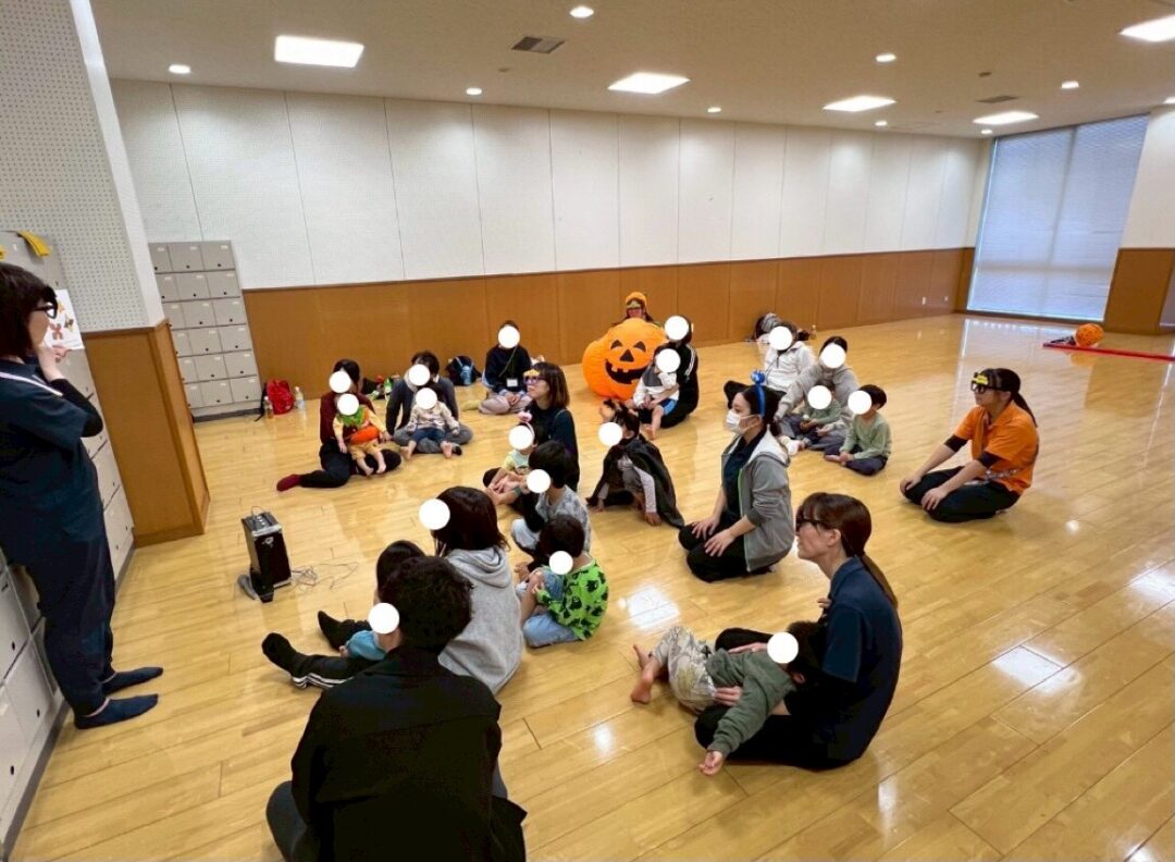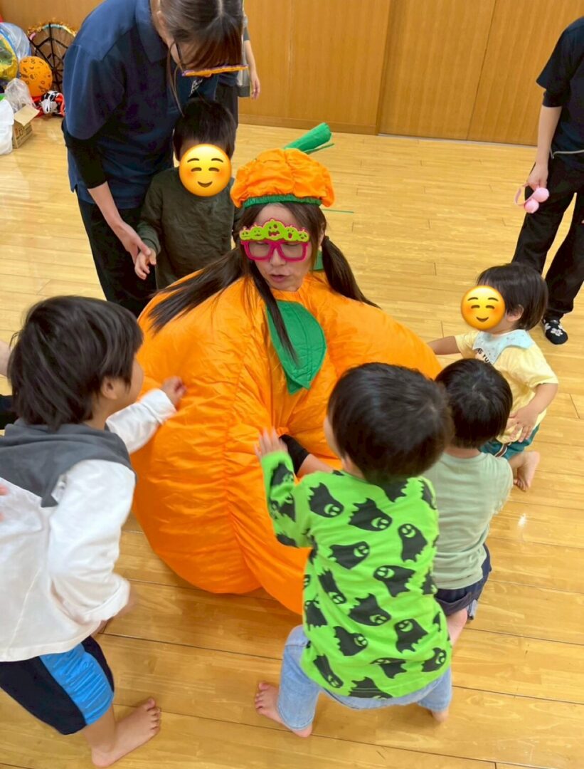 スペシャルゲストのカボちゃん登場!大きなカボチャのお友だちの登場に子どもたちは大喜びでした(≧▽≦)