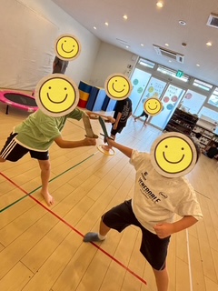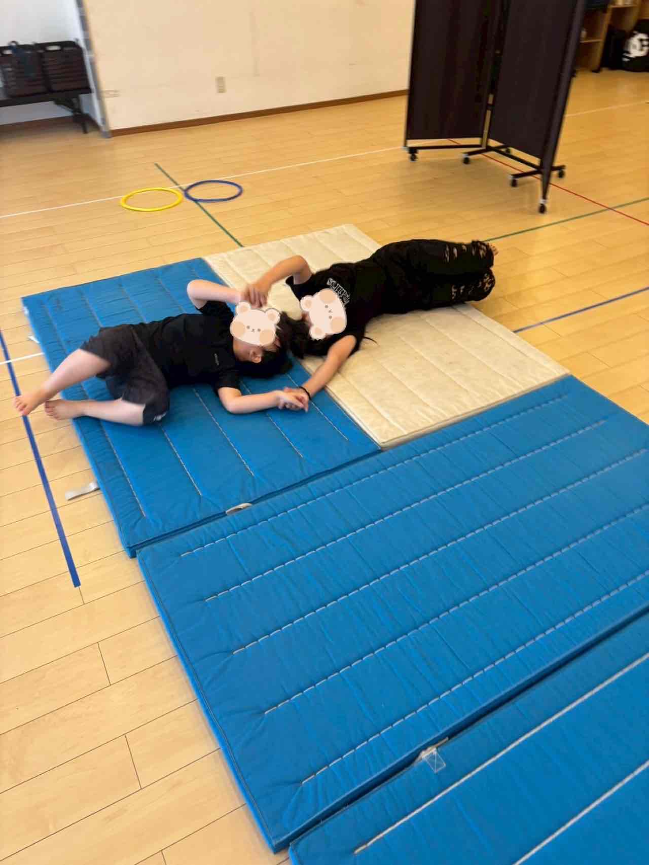 マットで仲良く転がったり、時には子どもたちが「段ボールで武器を作りたい!!」とお願しに来てくれたので