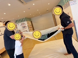 子どもたちがいろんな発想で思い思いの遊びをしてくれているのですが、職員も「これを使ってこんな遊びができるんや!」