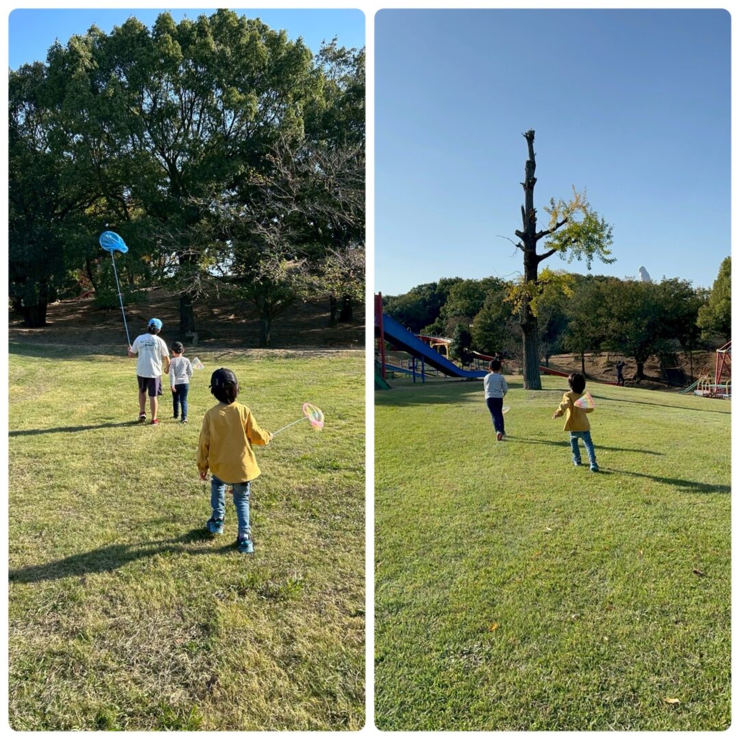 虫を捕まえたり、遊具で遊んだりと、