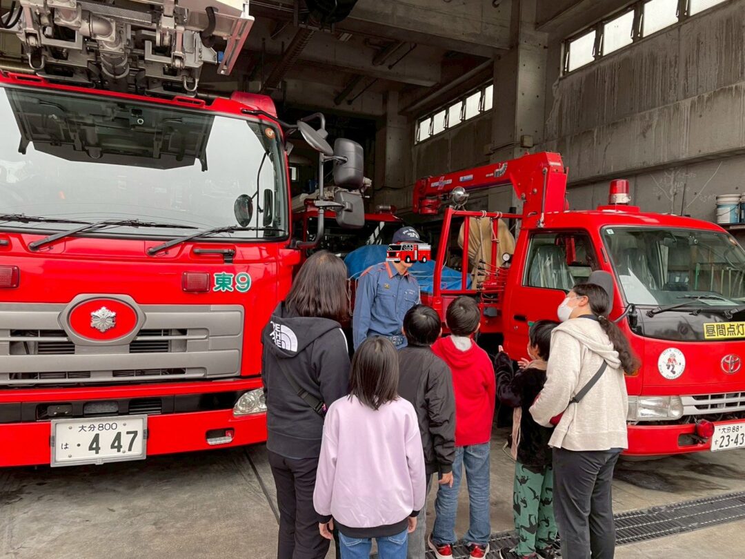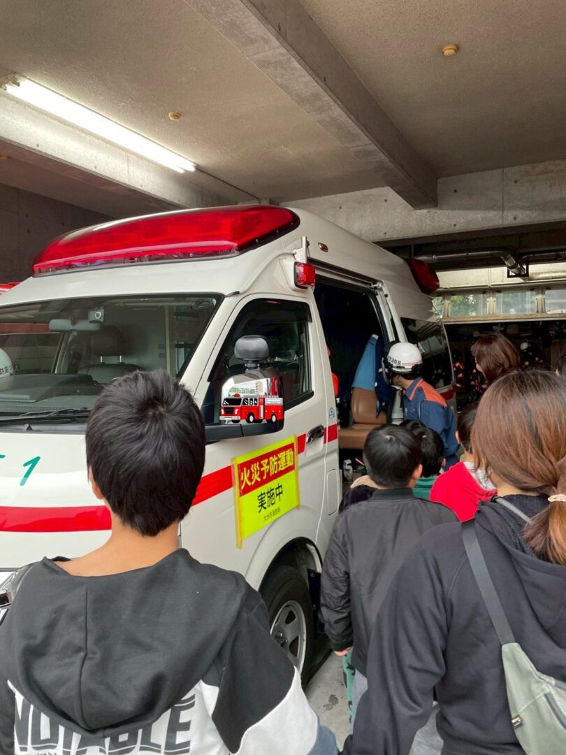 消防士さんから、消防車や救急車などの説明をしていただき、普段はみられない装備や車両を間近で見ることができました!