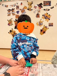 子どもたちは職員に「ここに書いてほしい!」「かぼちゃを書いてほしい!!」と職員に