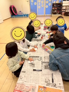 この日は工作がメインの活動で、みんな好きな顔を書いてくれていました!