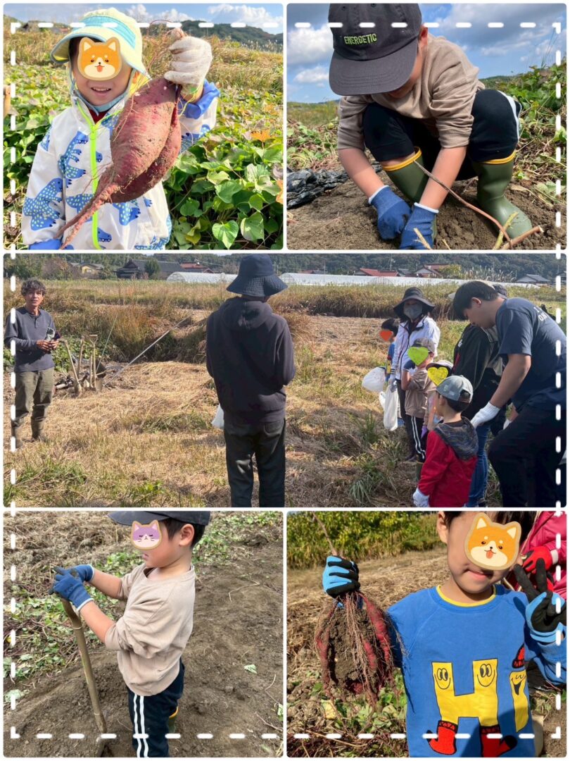 5月、春の陽ざしの中、小さな手で苗を植えた子どもたち。その時の記憶を呼び覚ますように、約半年間、土の中で大切に育まれたさつまいもを、今日は自分たちの手で掘り起こします。この体験は、子どもたちにとって多くの学びと成長の機会となりました。