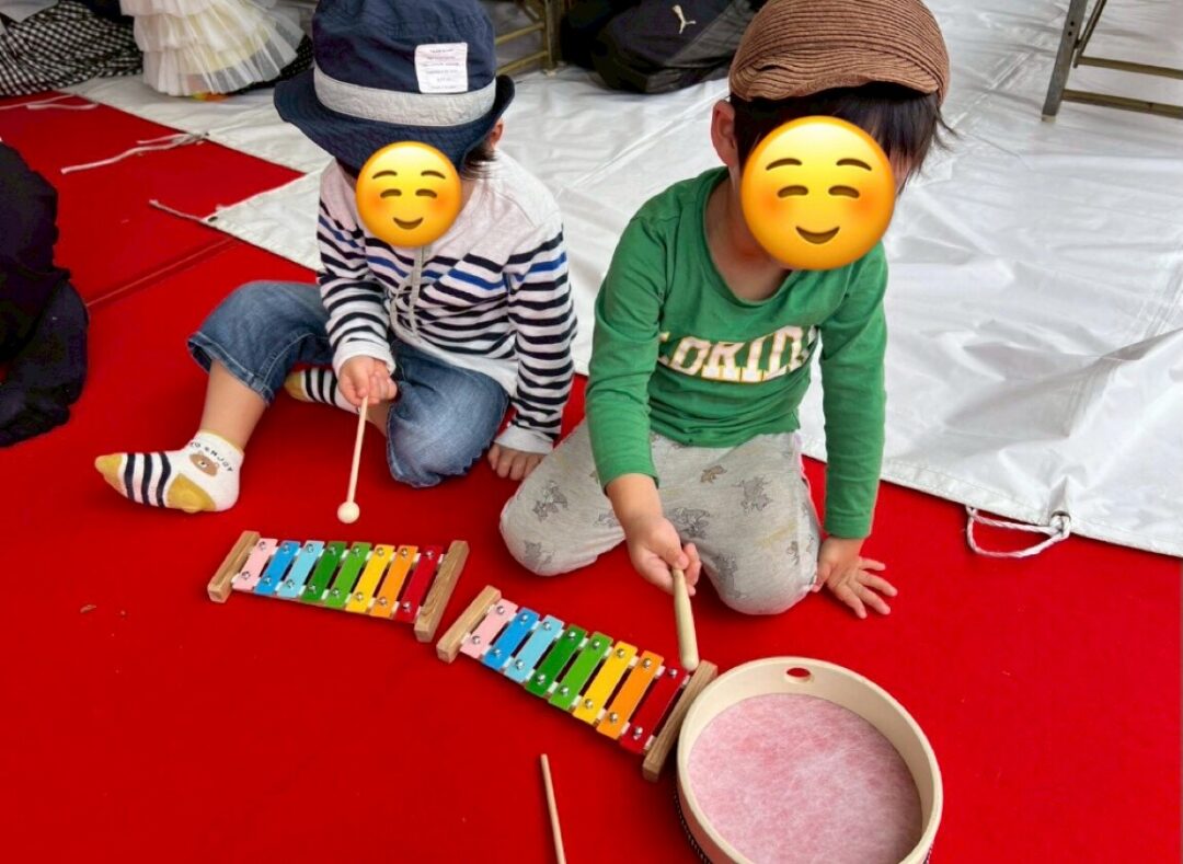 木琴や木の太鼓でお友だちと一緒に演奏する姿も見られました(o^―^o)