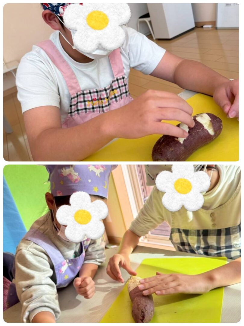 先日みんなでおやつ作りにさつまいもを使った「サツマイモもち」のクッキングをしました✨