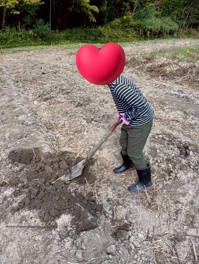 足でスコップを踏み、土の中に差し込みテコの原理で掘っていきます。