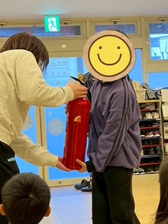 子どもたちは興味津々で、実際に消火器を持たせてもらいました。