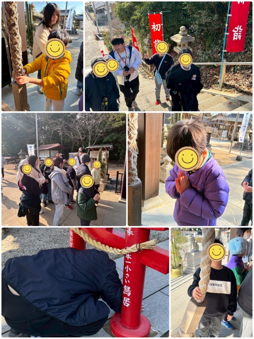 みんなで地域の黒石神社と熊野神社へ参拝に伺いました。 公共の場でのルールや参拝のマナーを学ぶ貴重な機会となりました。神聖な空気の中で「二礼二拍手一礼」を実践し、静かに手を合わせることで、社会性の向上と情緒の安定を図っています。地域の方々と新年の挨拶を交わす場面もあり、社会との繋がりを感じる一歩となりました。