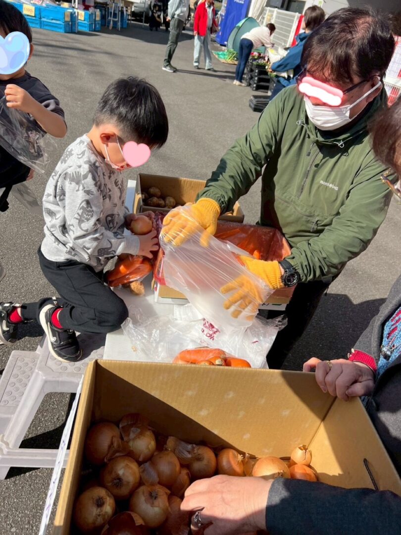 野菜の詰め放題では、「ぼく、にんじん食べれるよ!!」「ママにこれでカレー作ってもらうんだ」と嬉しそうにお話しながら一生懸命袋に詰める姿がありました(o^―^o)