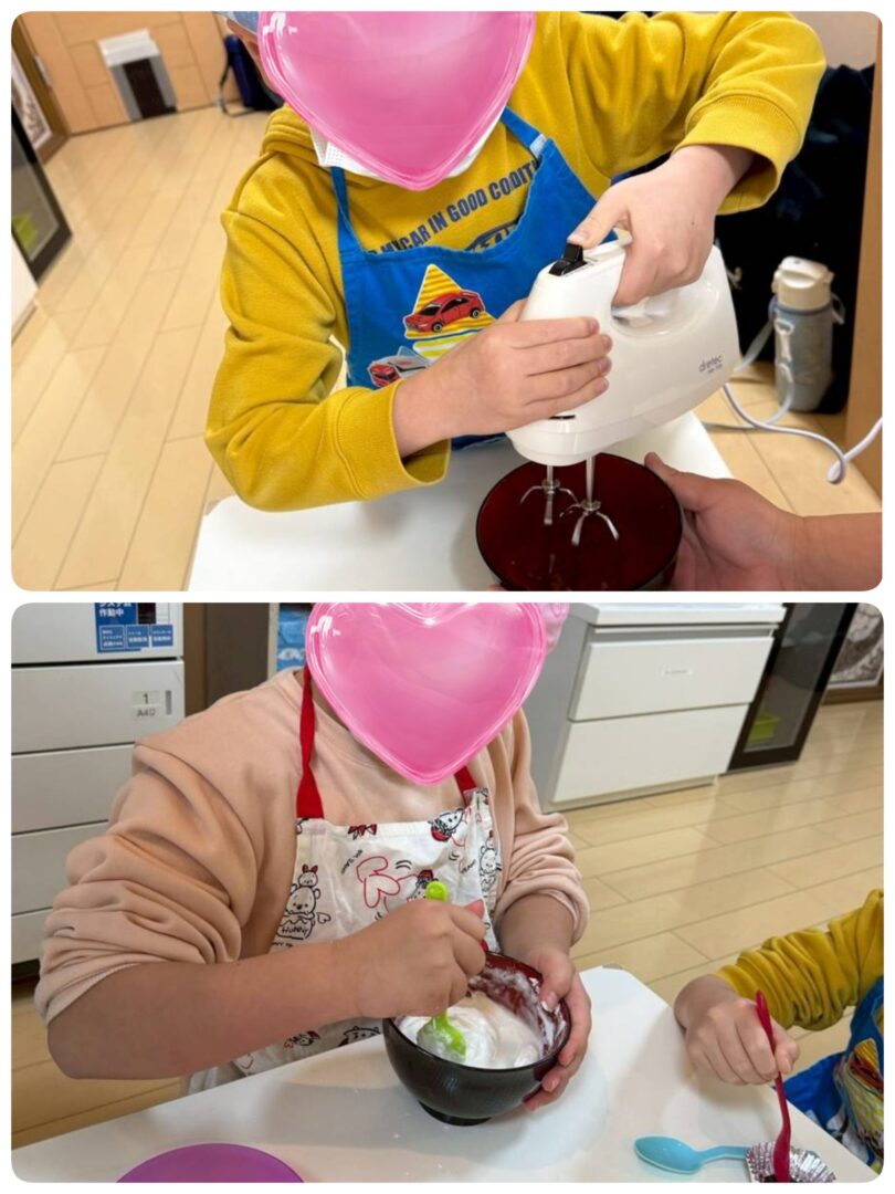 指先を使ってトッピングをのせたり、思い思いに考えながらデコレーションを楽しんでいました🤩