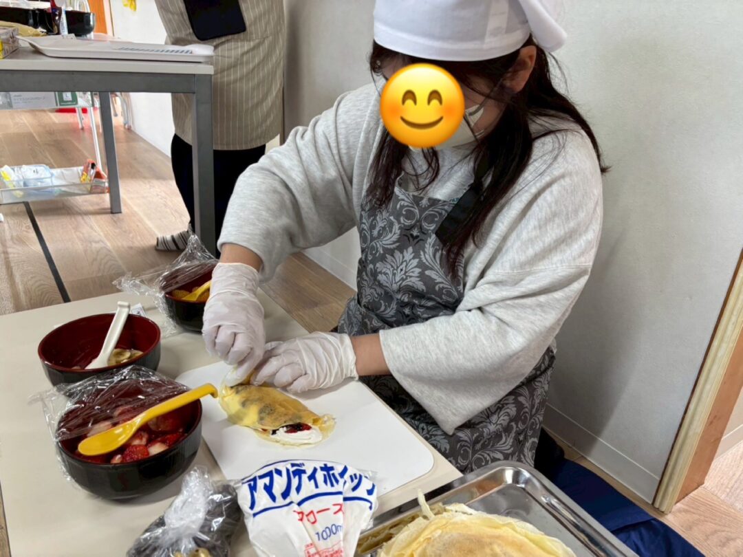 今回はクレープおやつ💛保護者の方が生地を作ってくれたり、フルーツを切ってくれる様子を離れた場所からでも興味津々に見ていた子どもたち☺
