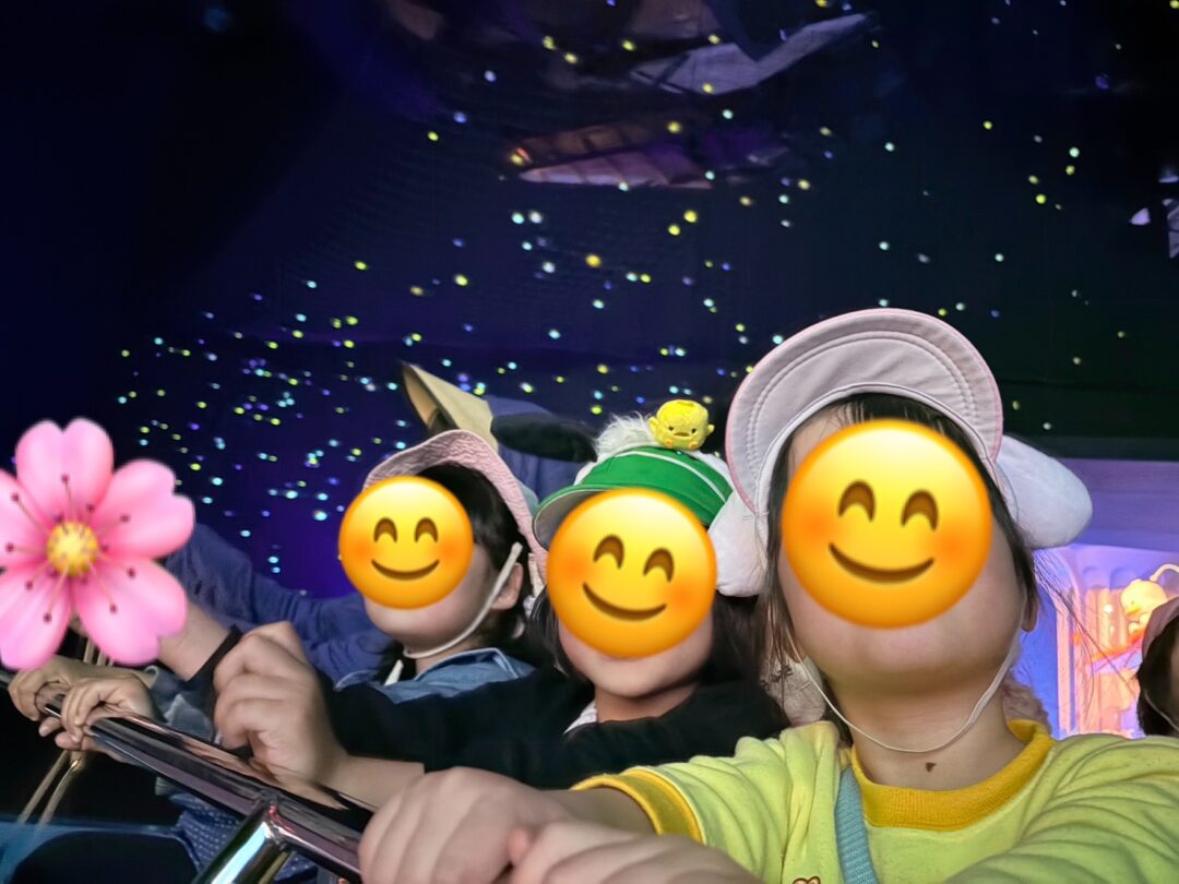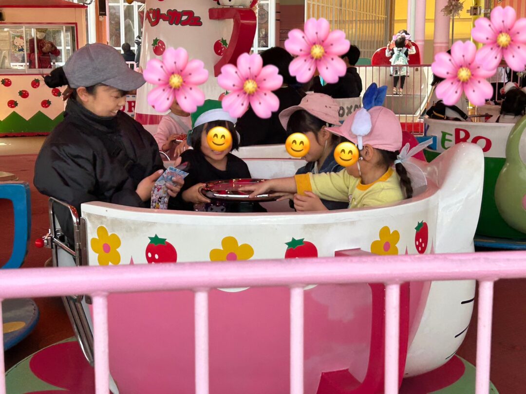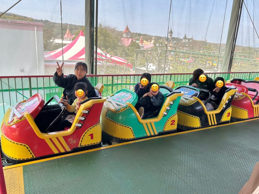 各グループに分かれて行動し、各々コーヒー☕カップやジェットコースター、観覧車🎡等いろいろ乗り物に乗りました⭐
