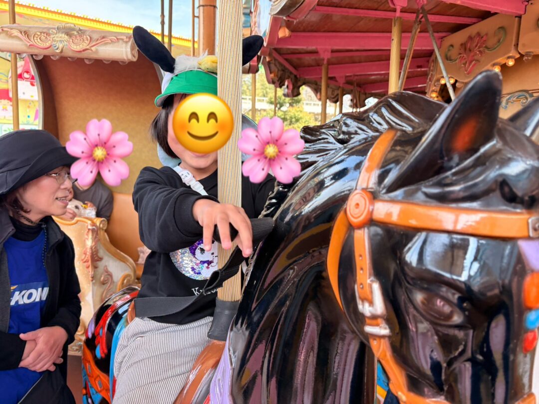 ジェットコースターも怖いかもと言っていたが、乗ってみると「めっちゃ楽しい!」と笑顔で乗る事が出来ました🌼