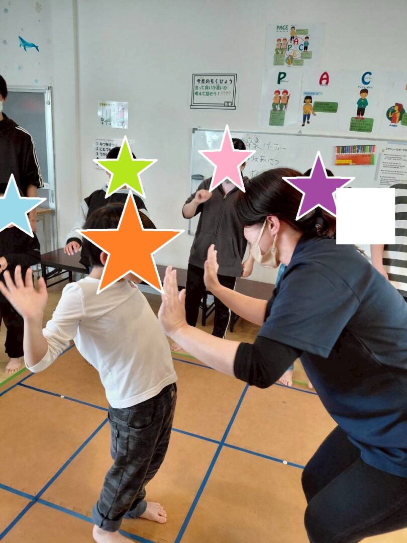 みんなでお楽しみゲームを行いました(^▽^)/まずはみんなが大好きな手押し相撲!!
