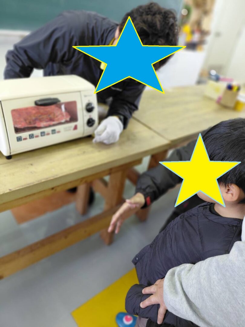 下書きが終わったら、オーブントースターに入れて焼きます。