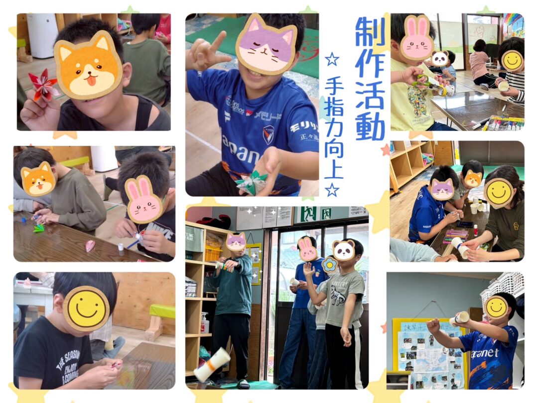 制作活動では、手先を使いながら集中して取り組み、それぞれの個性あふれる作品が出来上がりました✂️